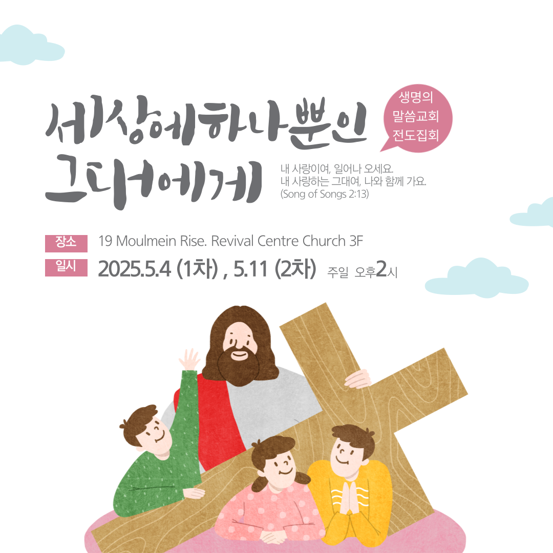 5/4 전도집회(1차) - "세상에 하나뿐인 그대에게"가 개최됩니다.