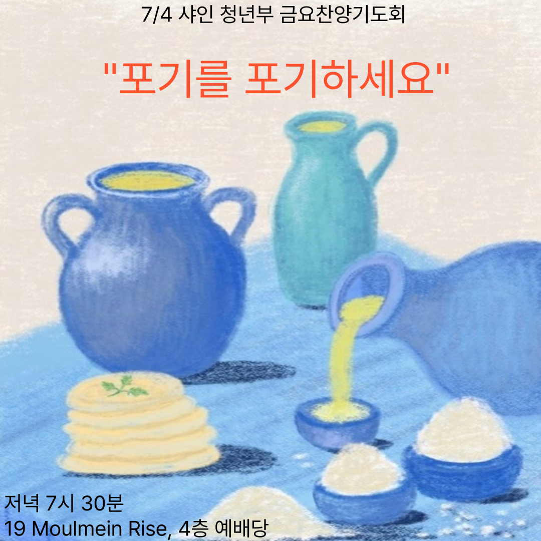 7/4 샤인청년부 금요찬양기도회가 있습니다.