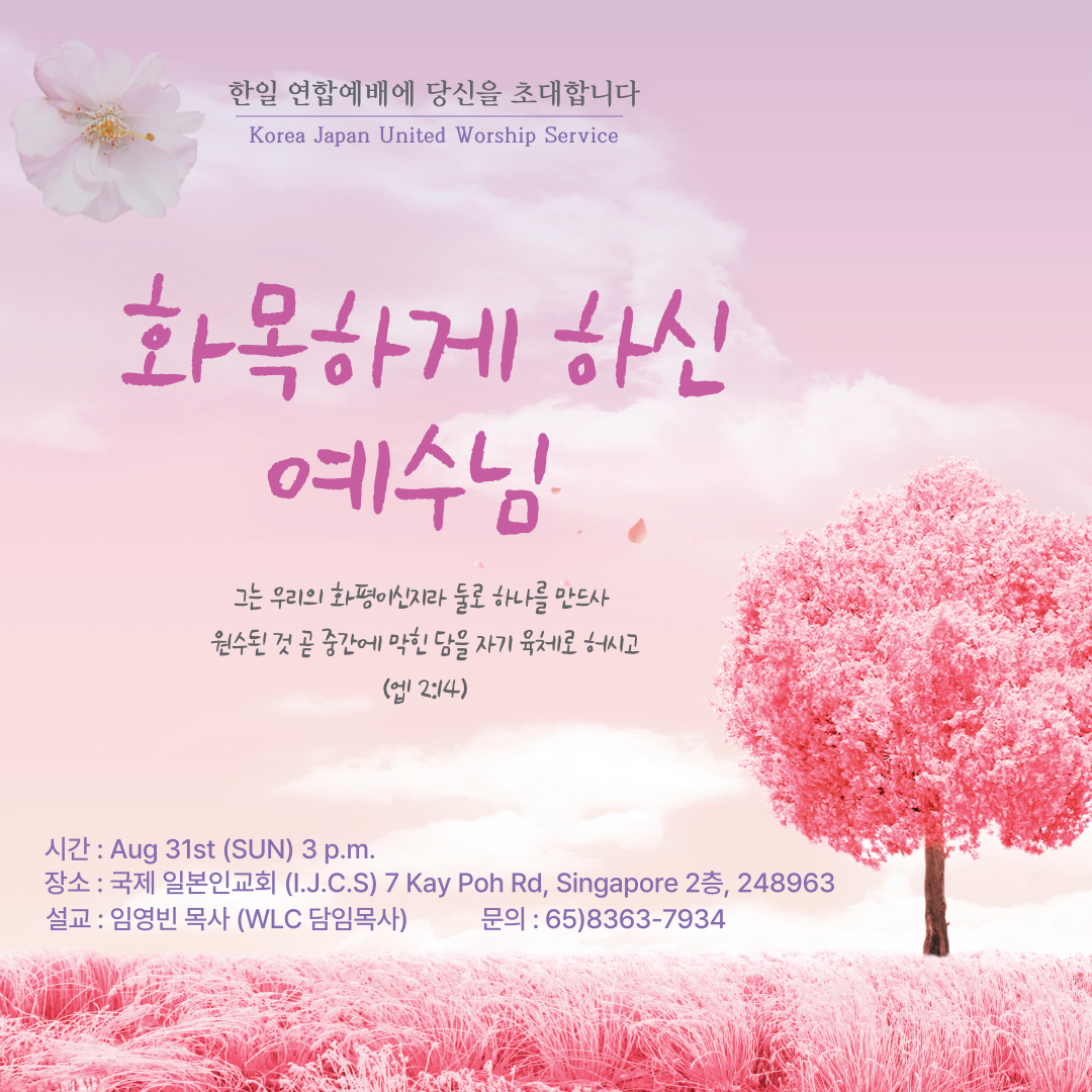 국제일본인교회 (IJCS) 연합예배 안내 (8/31)