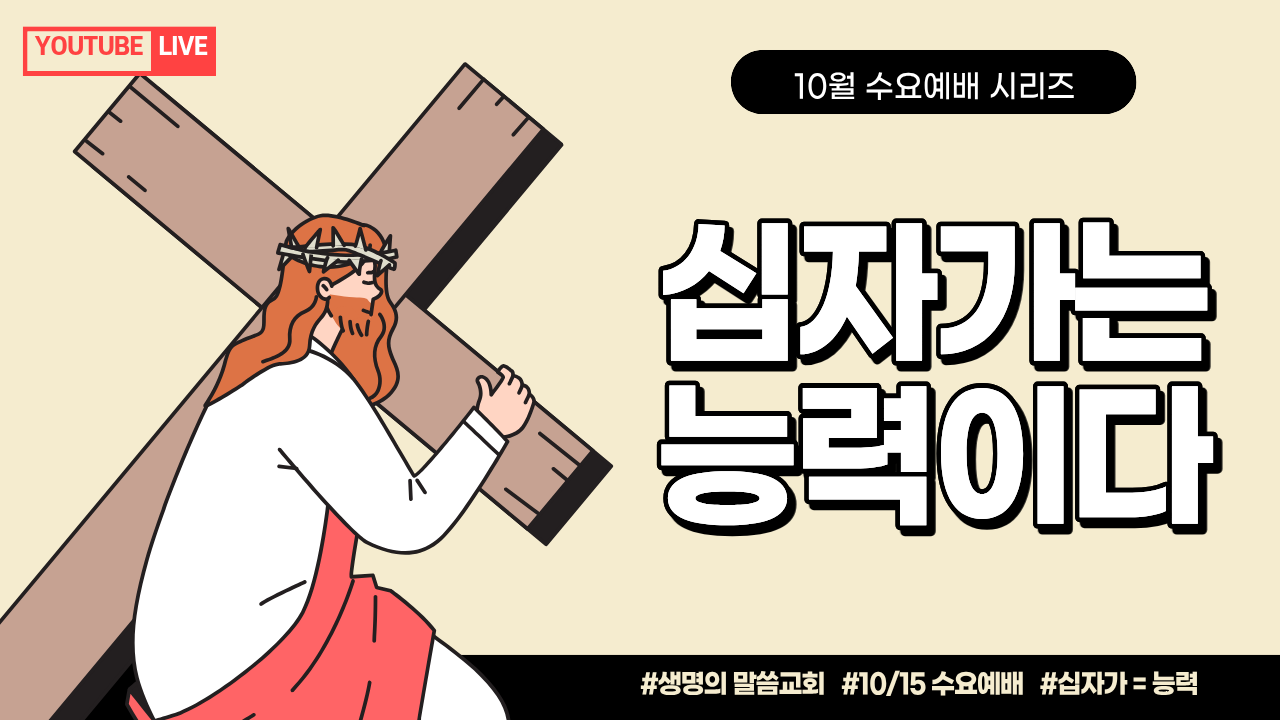 10월 15일 수요예배 안내 - "십자가는 능력이다!" (저녁 7시 30분 / 4층 예배당)