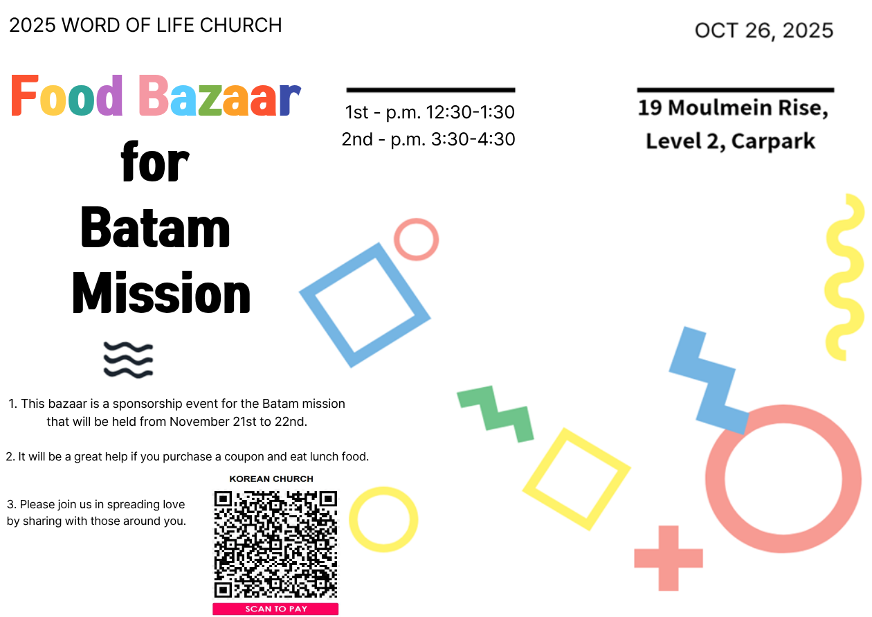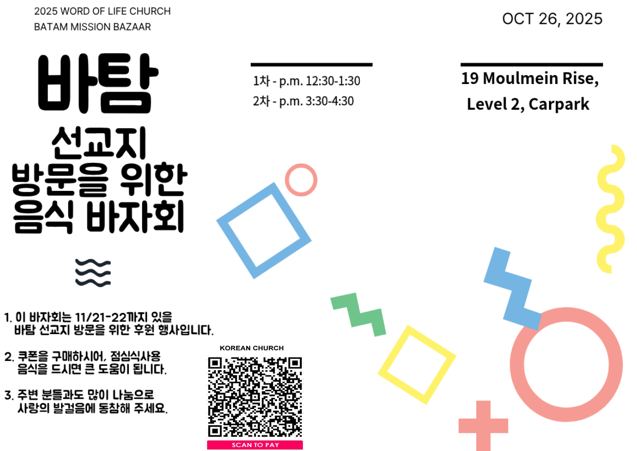 바탐 선교지 방문을 위한 음식 바자회 안내 드립니다. (10/26)