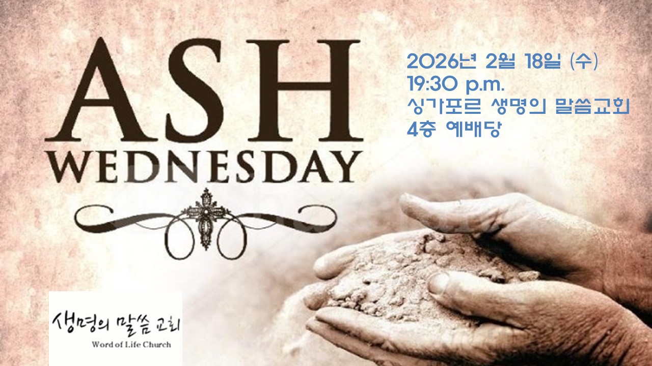 2026년 2월 18일 수요 예배는, 사순절의 시작일에 모두 한자리에 모여 '재의 수요일' 예배로 드립니다.