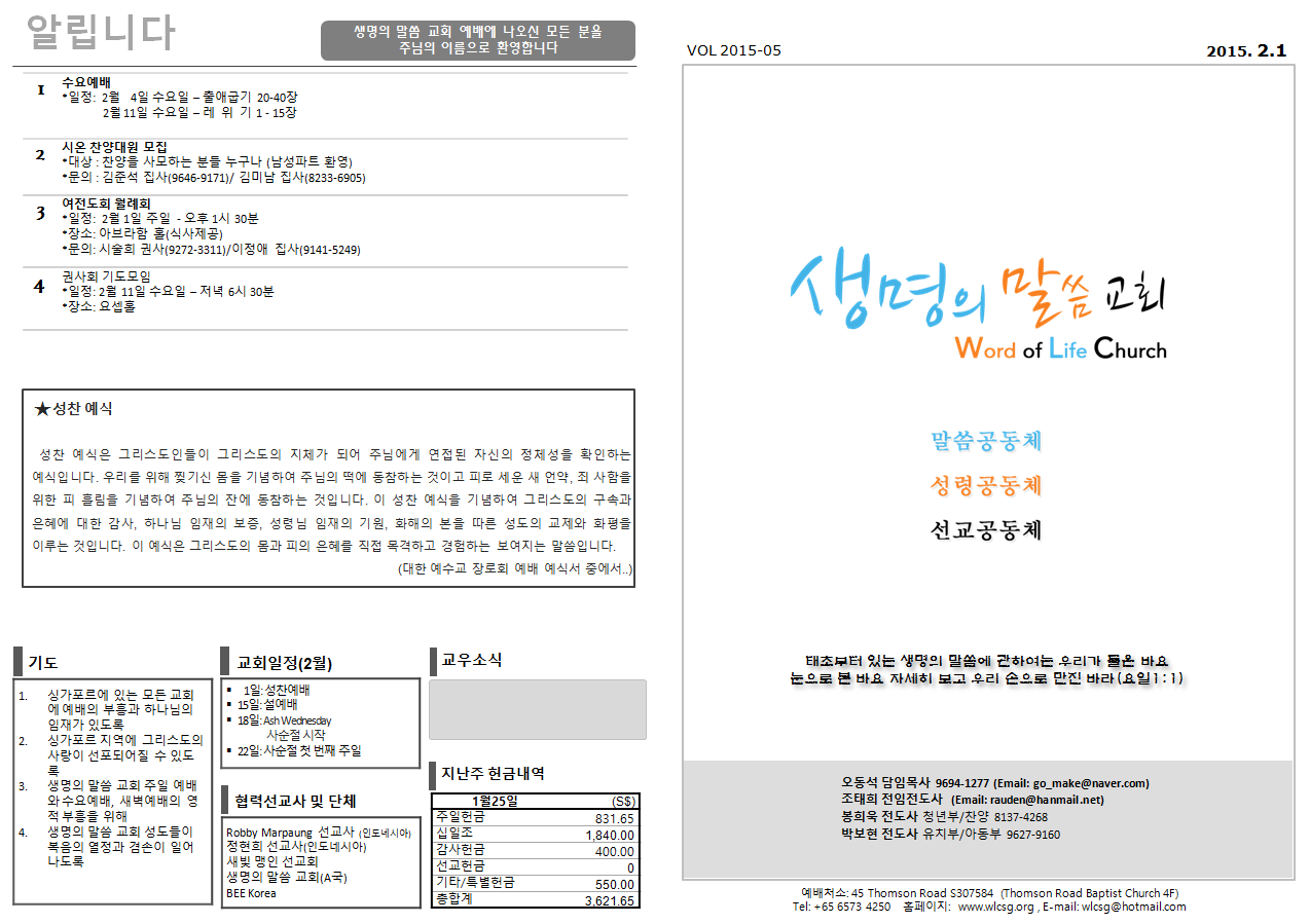주소 : 19 Moulmein Rise Singapore 308134 (Revival Centre Church 3-4F)