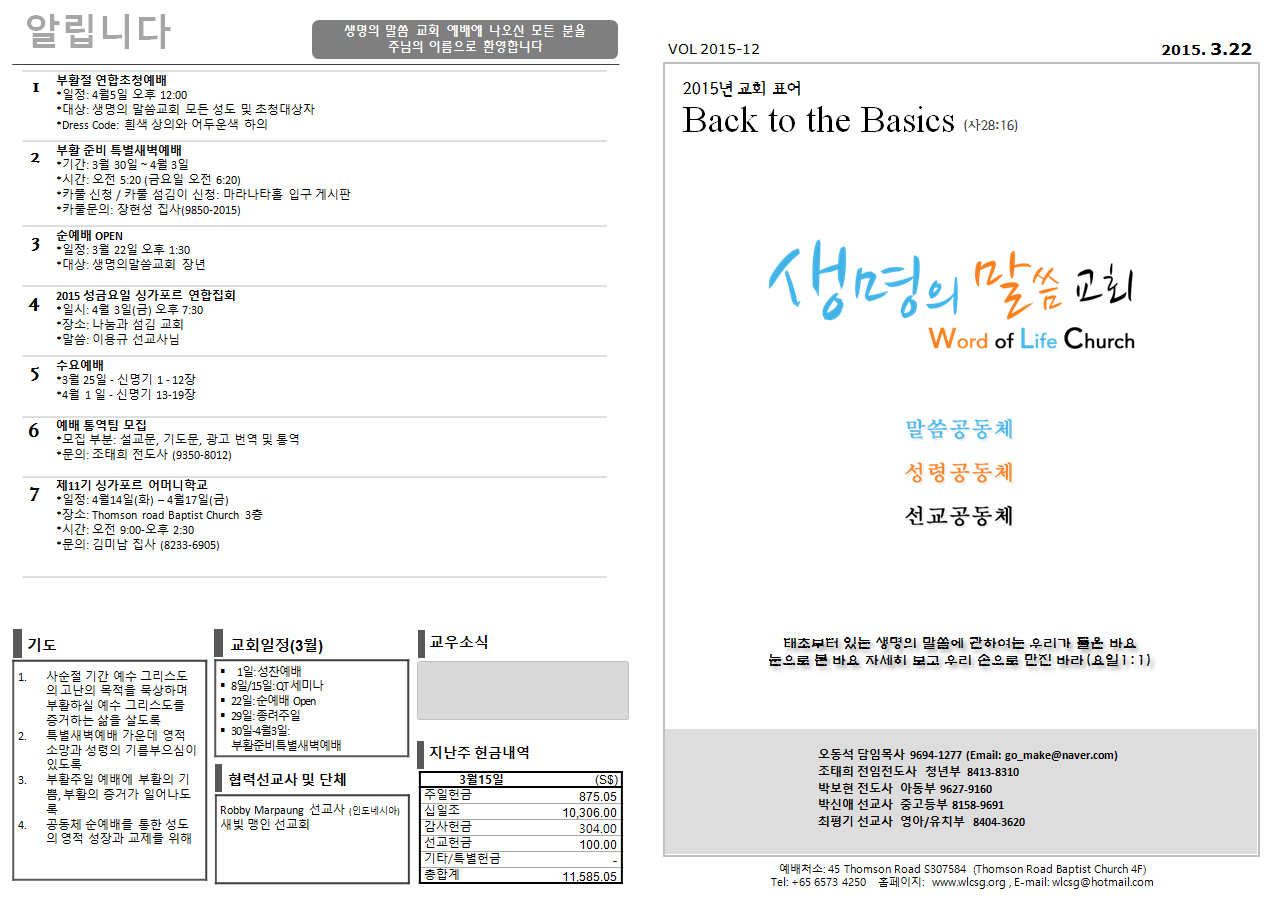 주소 : 19 Moulmein Rise Singapore 308134 (Revival Centre Church 3-4F)