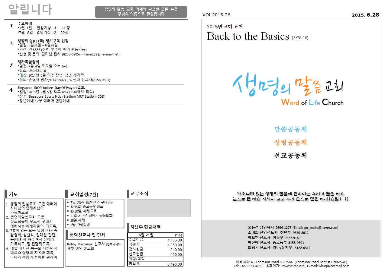 주소 : 19 Moulmein Rise Singapore 308134 (Revival Centre Church 3-4F)