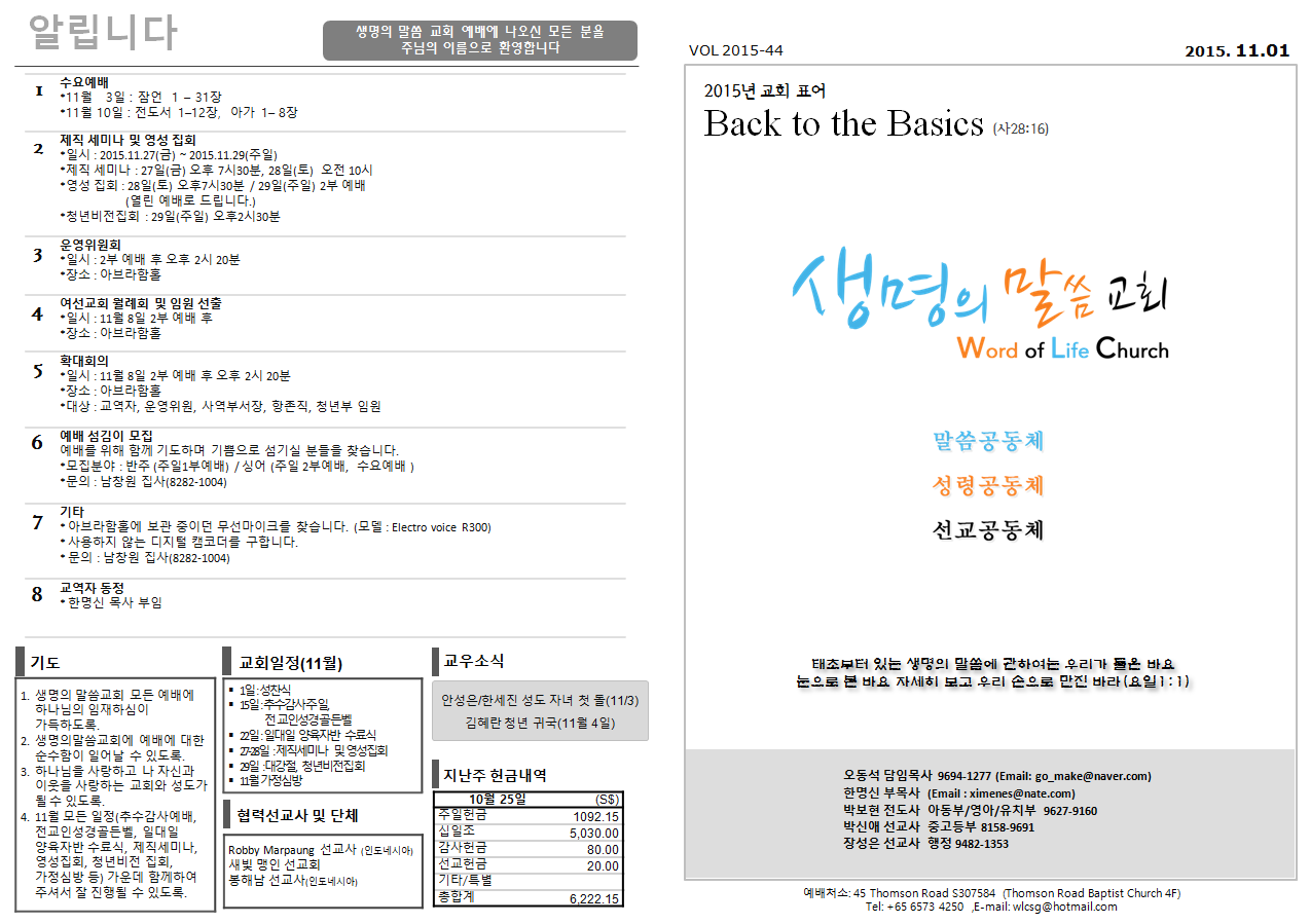 주소 : 19 Moulmein Rise Singapore 308134 (Revival Centre Church 3-4F)