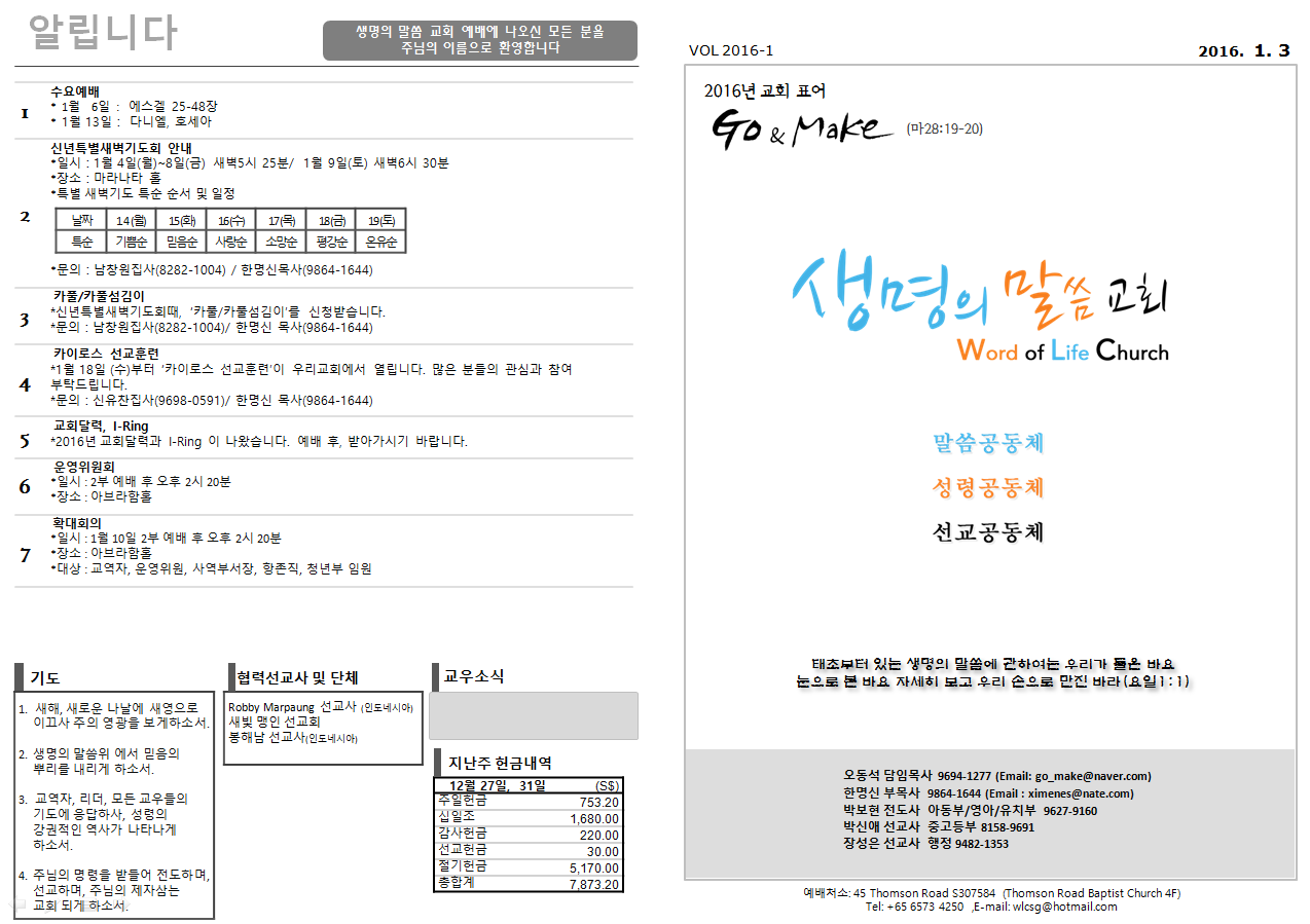 주소 : 19 Moulmein Rise Singapore 308134 (Revival Centre Church 3-4F)