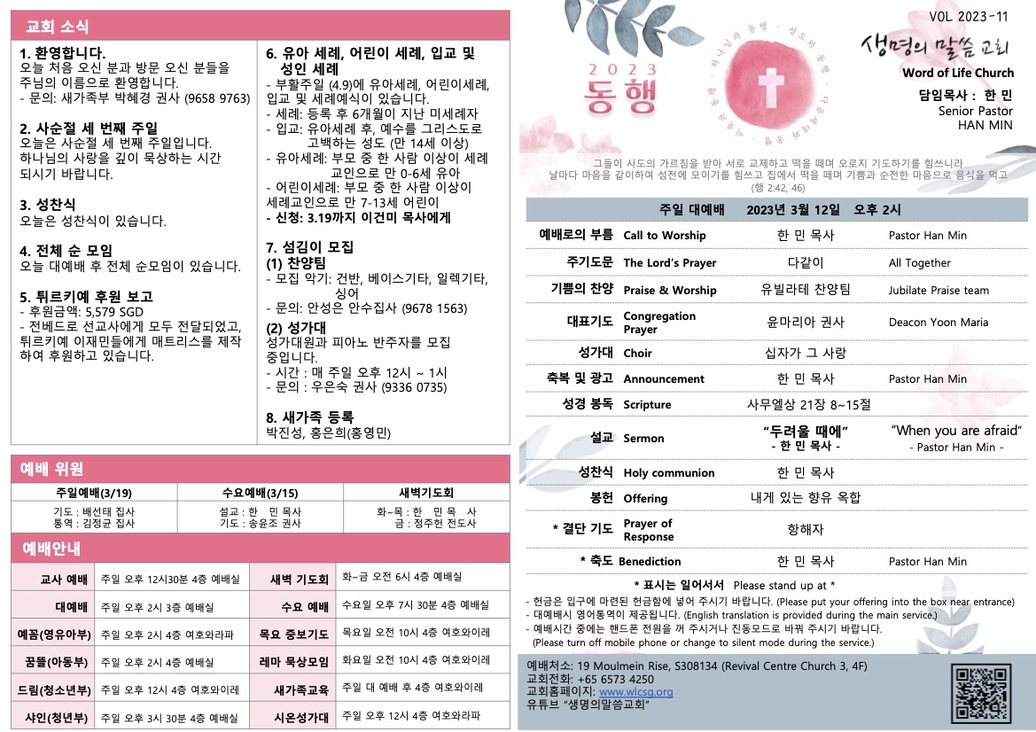주소 : 19 Moulmein Rise Singapore 308134 (Revival Centre Church 3-4F)
