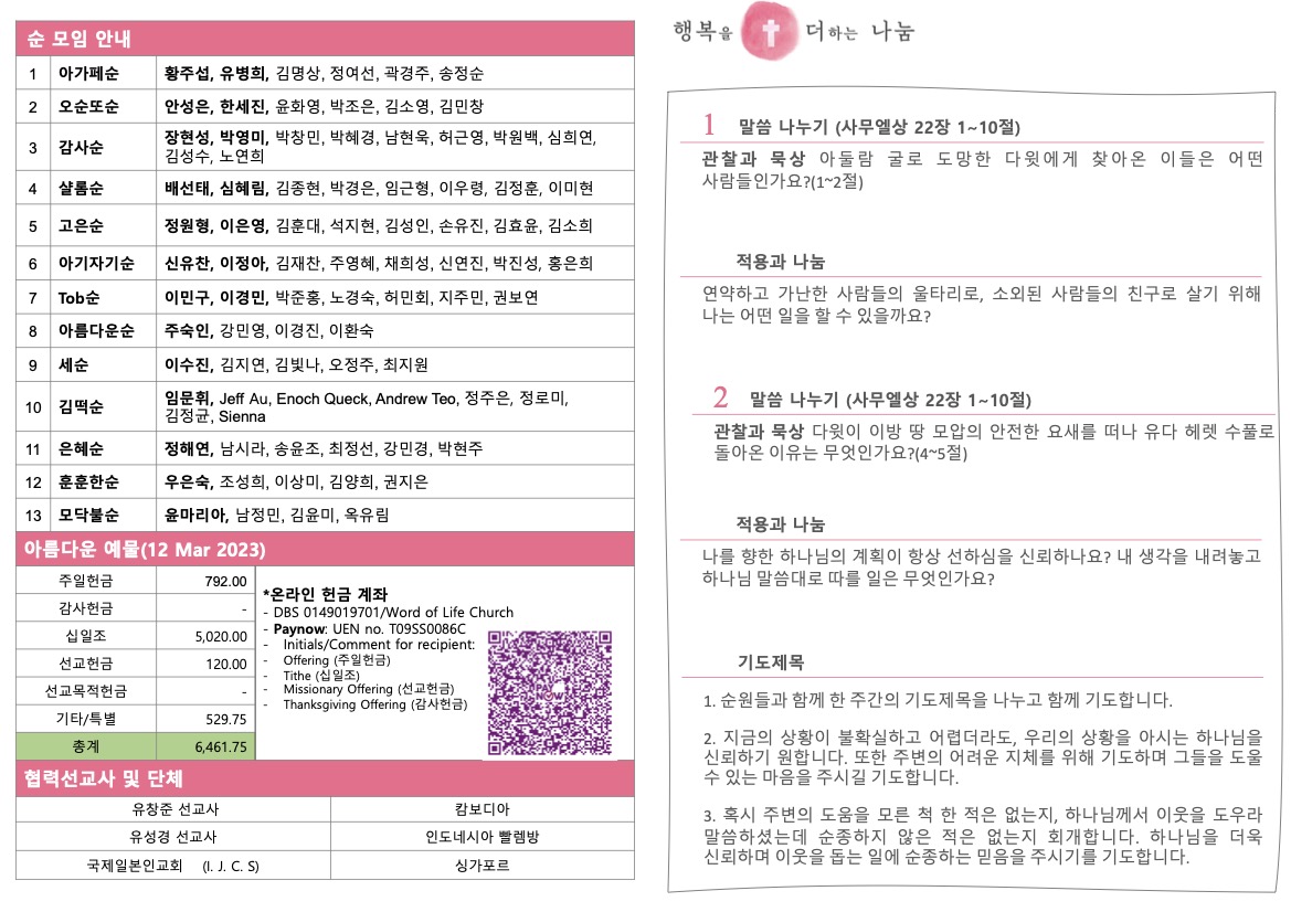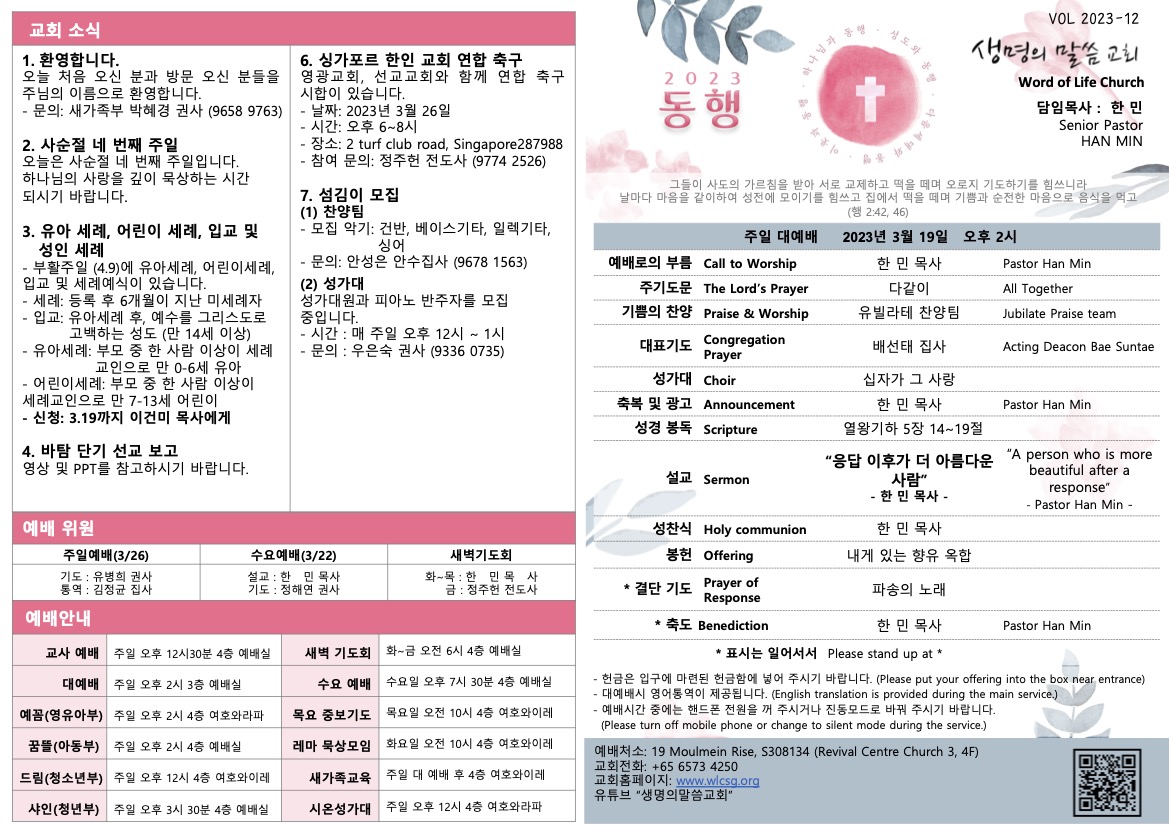 주소 : 19 Moulmein Rise Singapore 308134 (Revival Centre Church 3-4F)