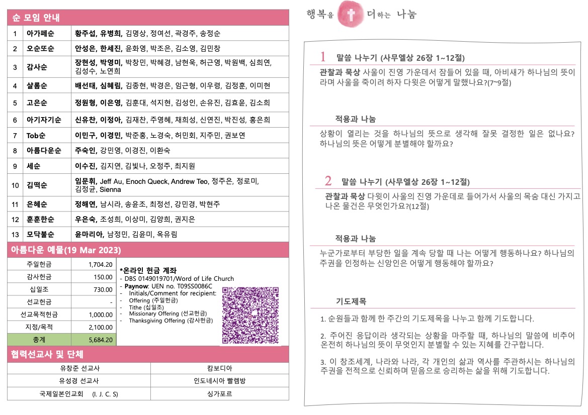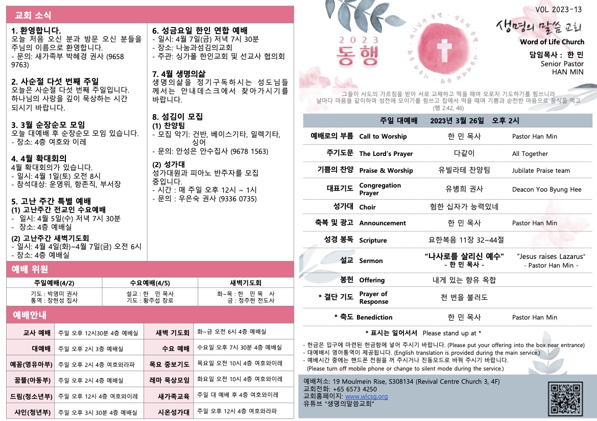 주소 : 19 Moulmein Rise Singapore 308134 (Revival Centre Church 3-4F)