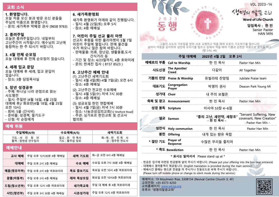 주소 : 19 Moulmein Rise Singapore 308134 (Revival Centre Church 3-4F)