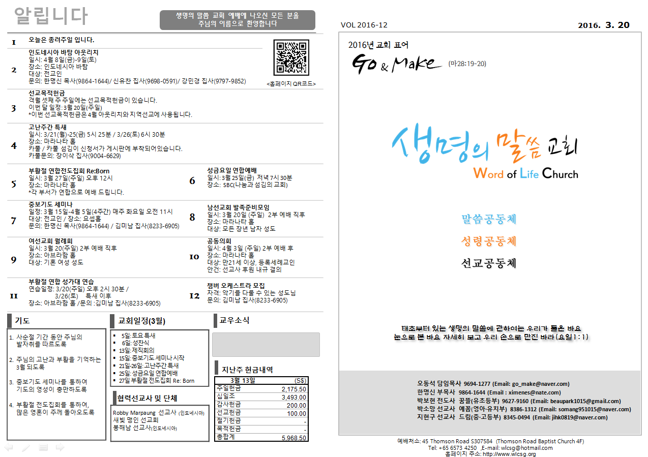 주소 : 19 Moulmein Rise Singapore 308134 (Revival Centre Church 3-4F)