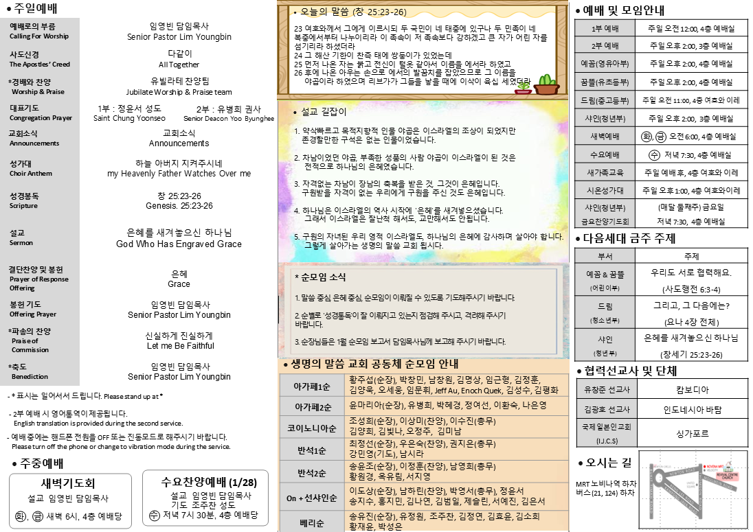 주소 : 19 Moulmein Rise Singapore 308134 (Revival Centre Church 3-4F)