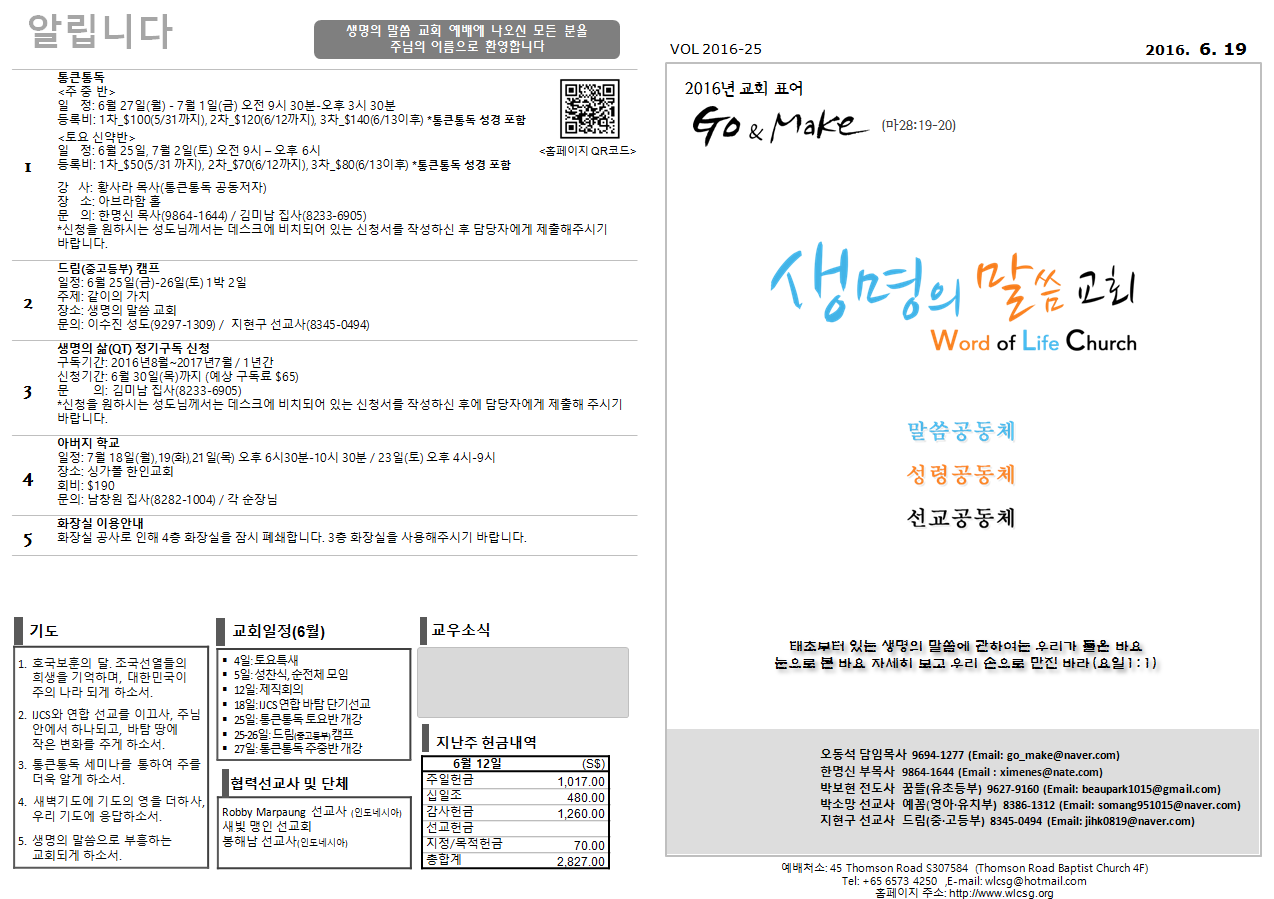 주소 : 19 Moulmein Rise Singapore 308134 (Revival Centre Church 3-4F)