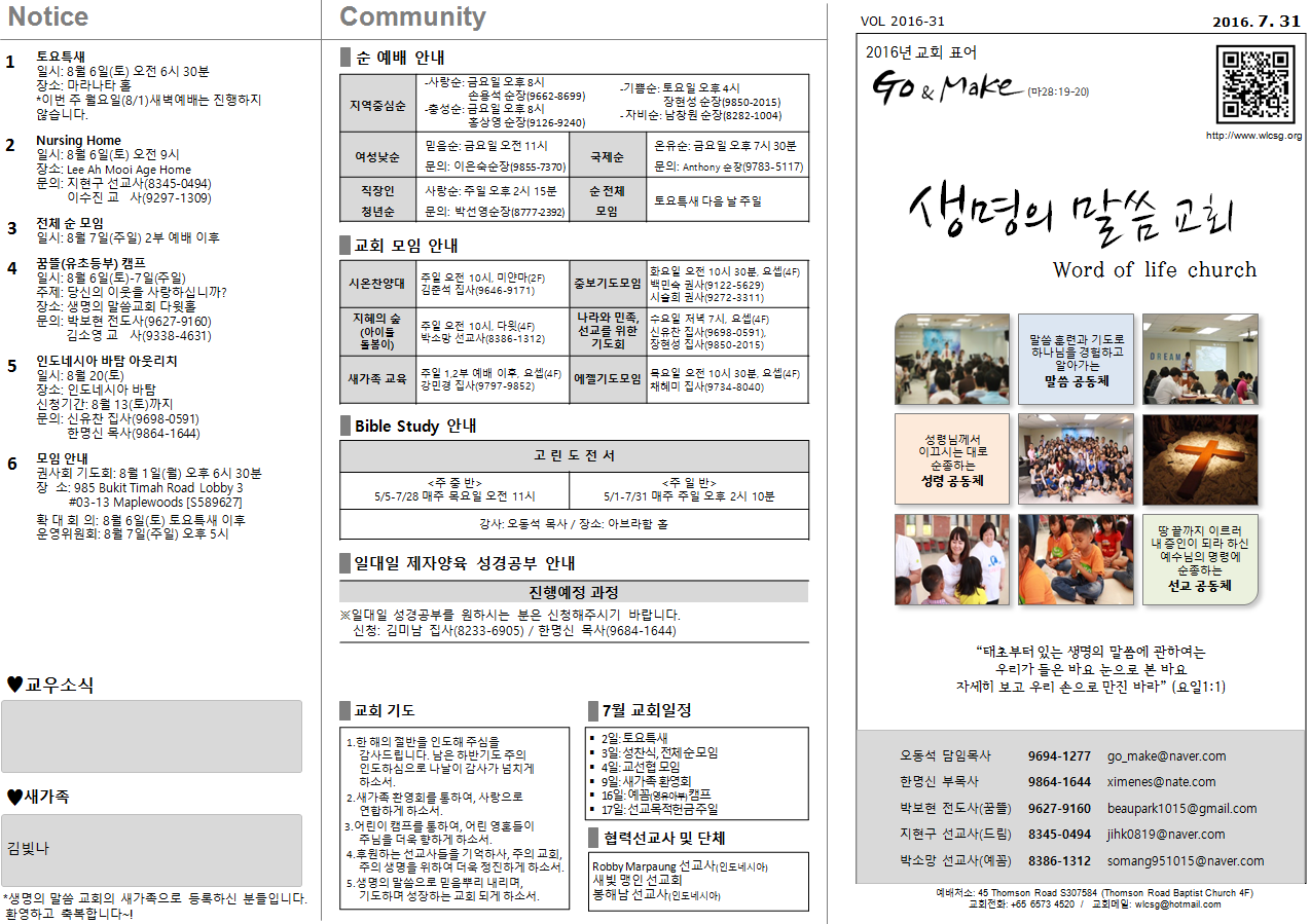 주소 : 19 Moulmein Rise Singapore 308134 (Revival Centre Church 3-4F)
