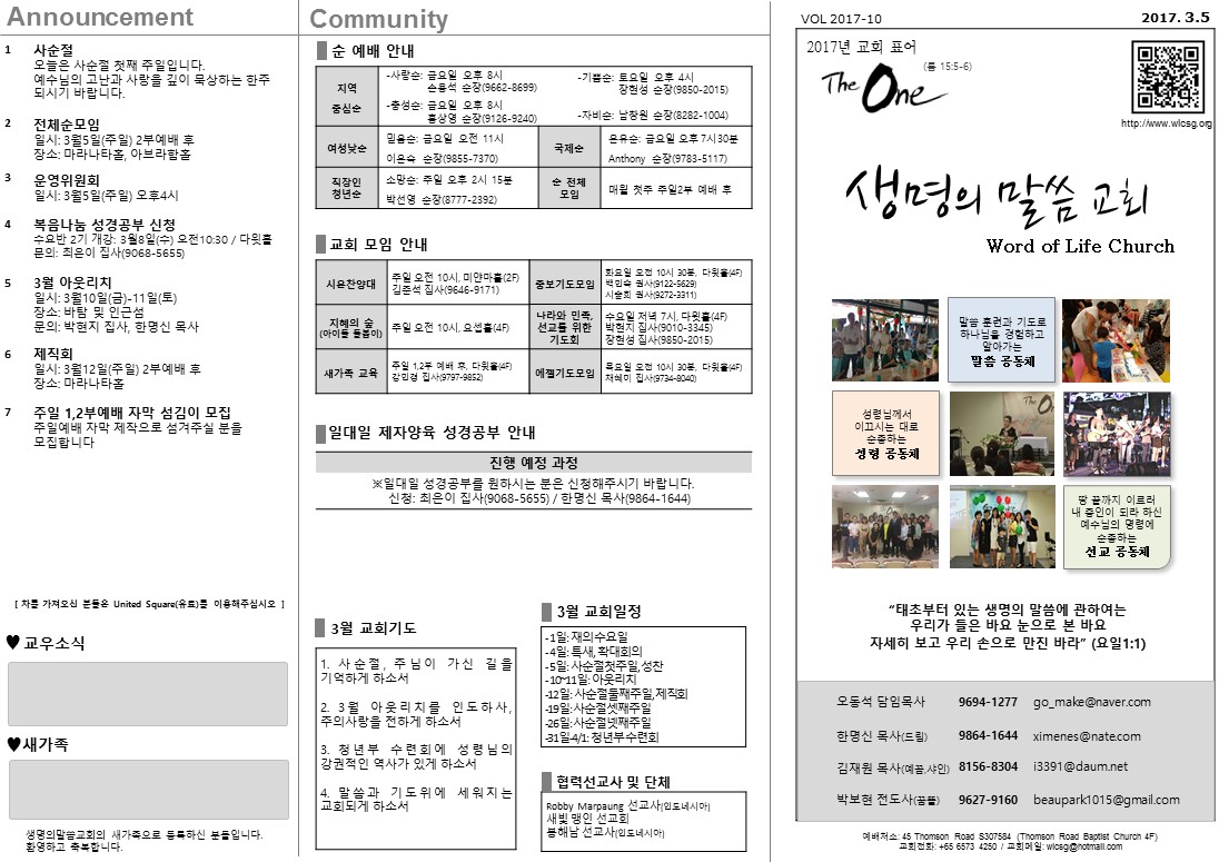 주소 : 19 Moulmein Rise Singapore 308134 (Revival Centre Church 3-4F)