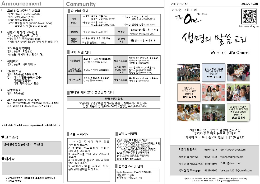 주소 : 19 Moulmein Rise Singapore 308134 (Revival Centre Church 3-4F)