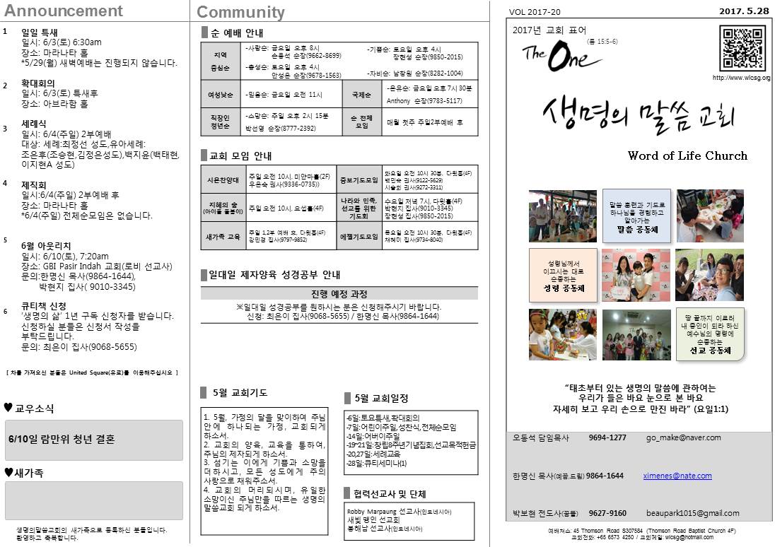 주소 : 19 Moulmein Rise Singapore 308134 (Revival Centre Church 3-4F)