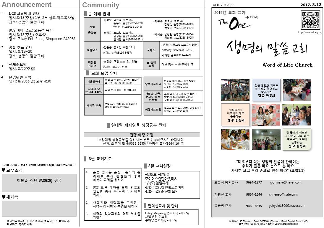 주소 : 19 Moulmein Rise Singapore 308134 (Revival Centre Church 3-4F)