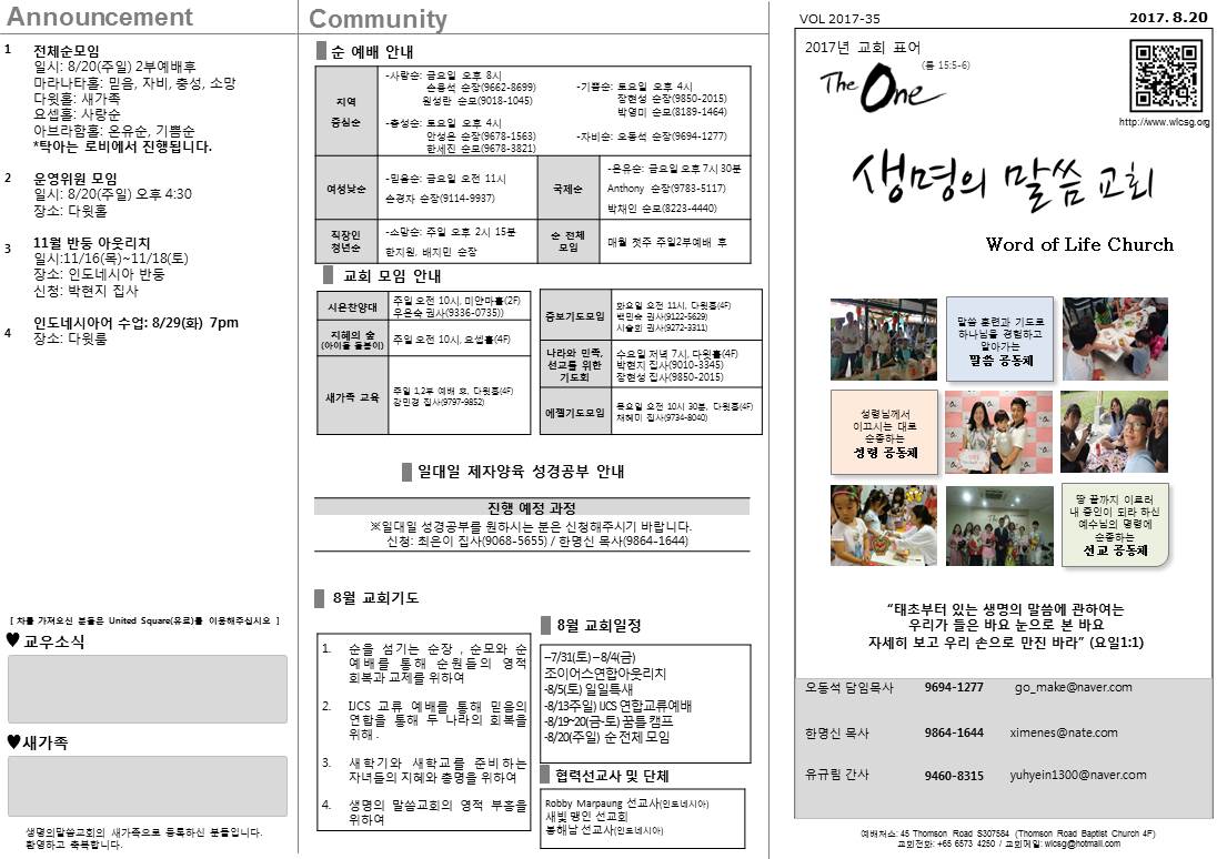 주소 : 19 Moulmein Rise Singapore 308134 (Revival Centre Church 3-4F)