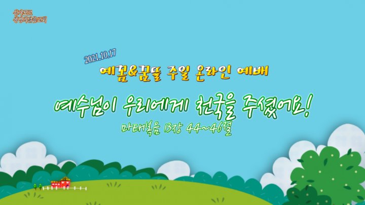 2021년 10월 17일 예꼼&꿈뜰 주일 예배 (예수님께서 우리에게 천국을 주셨어요!)